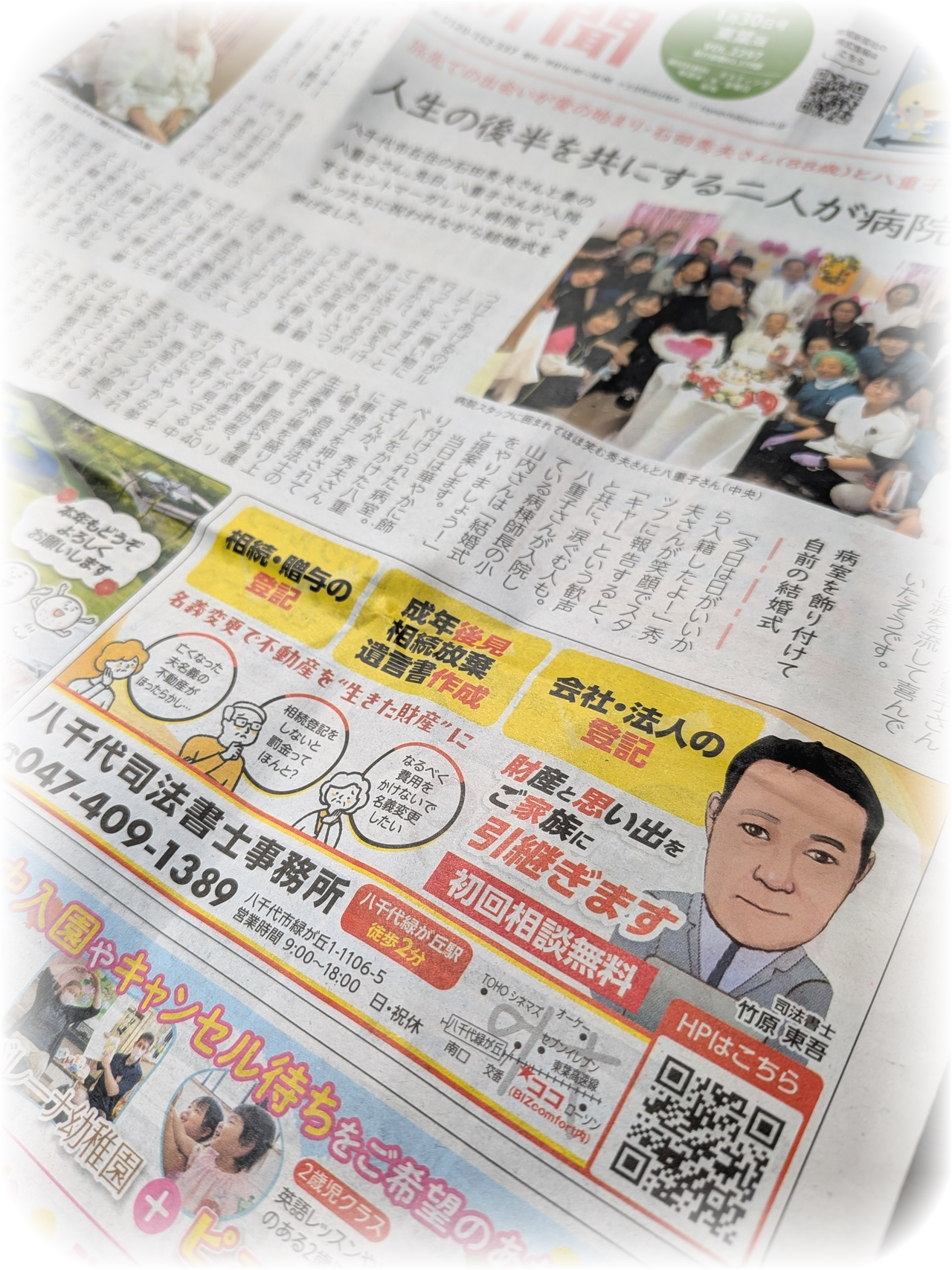 | 令和8年01月28日 | ちいき新聞(1/30号・東葉版)1面に当事務所の広告が掲載されました。広告を切り抜き持参したお客様は料金を割引いたします。お問い合わせください |